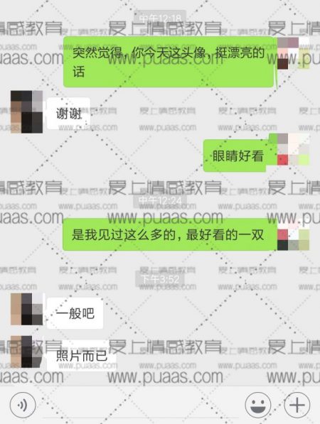 上面这个兄弟是不断在夸女生,想通过讨好,让女生产生好感。